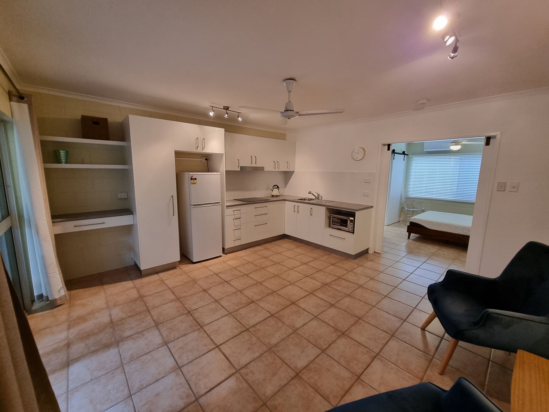 - Generous bedroom with built-in wardrobes and air-conditioning.
